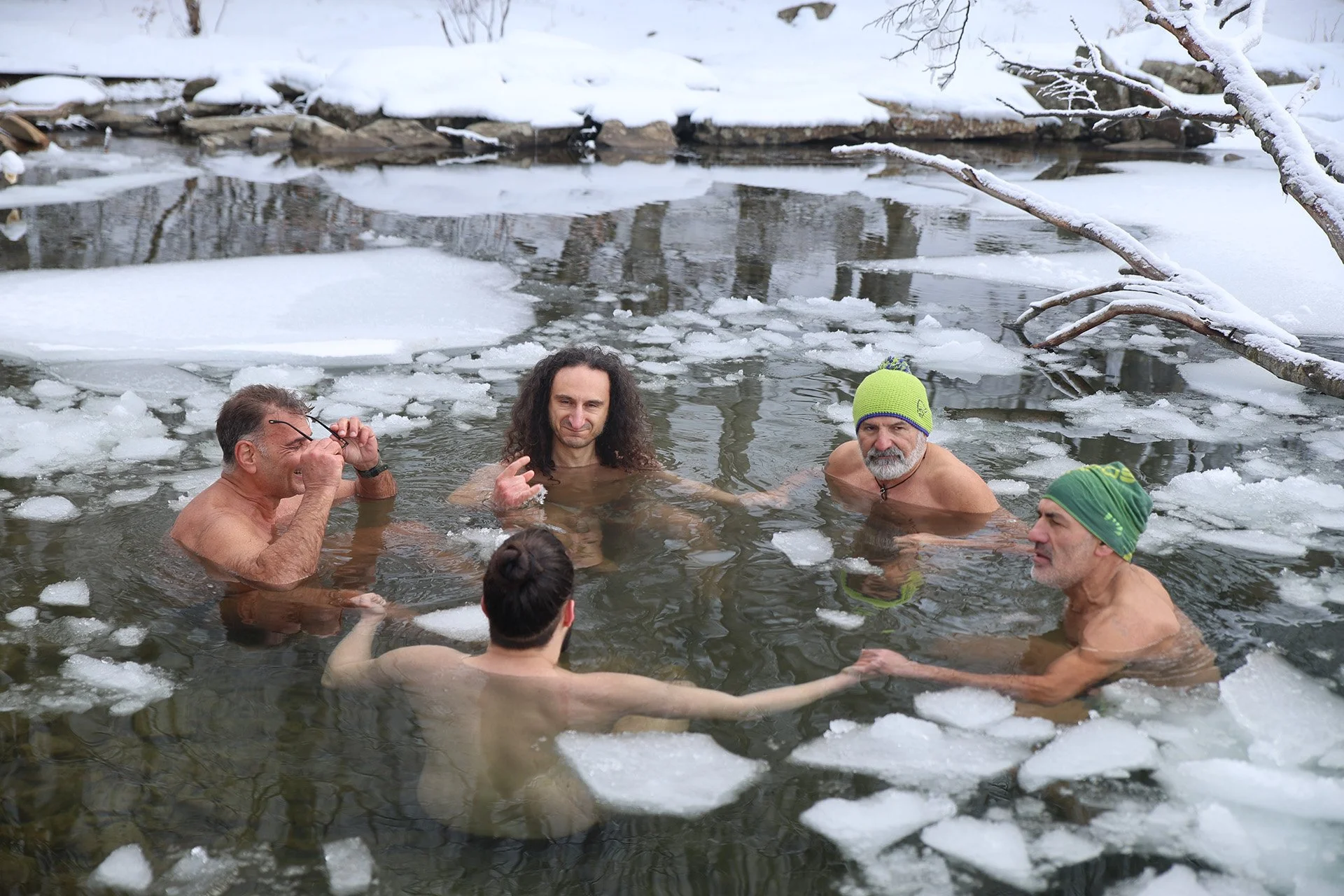 Bagni ghiacciati in natura supportati da due istruttori esperti